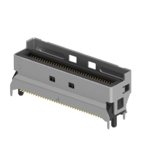 Features 0.6mm pitch vertical and Right angle High speed -56Gb/S PAM4, PCIe Gen5, Gen6 Support both cable and card edge connection